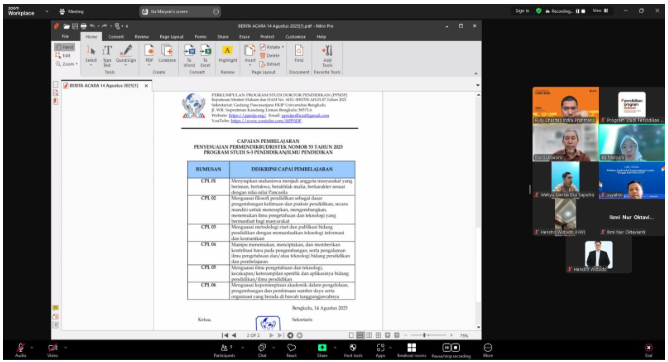 Yogyakarta, 5 Maret 2025 — Program Studi (Prodi) Pendidikan Program Doktor melaksanakan kegiatan workshop rekonstruksi Rencana Pembelajaran Semester (RPS) dan bahan ajar secara daring (online) pada Rabu, 5 Maret 2025. Kegiatan ini diikuti oleh dosen pengampu mata kuliah pada Program Doktor Pendidikan.