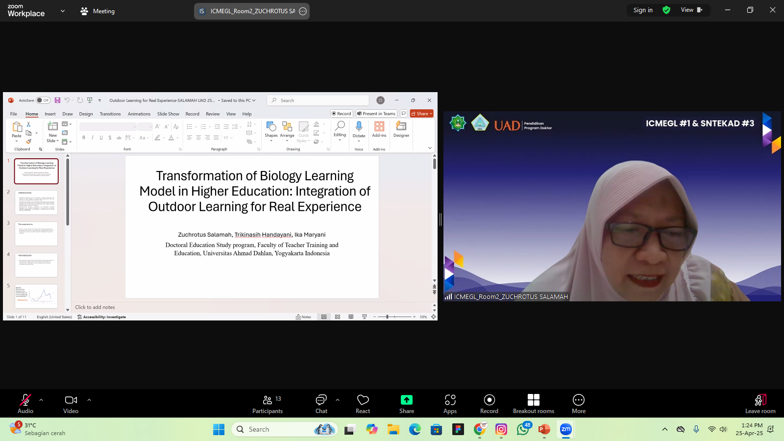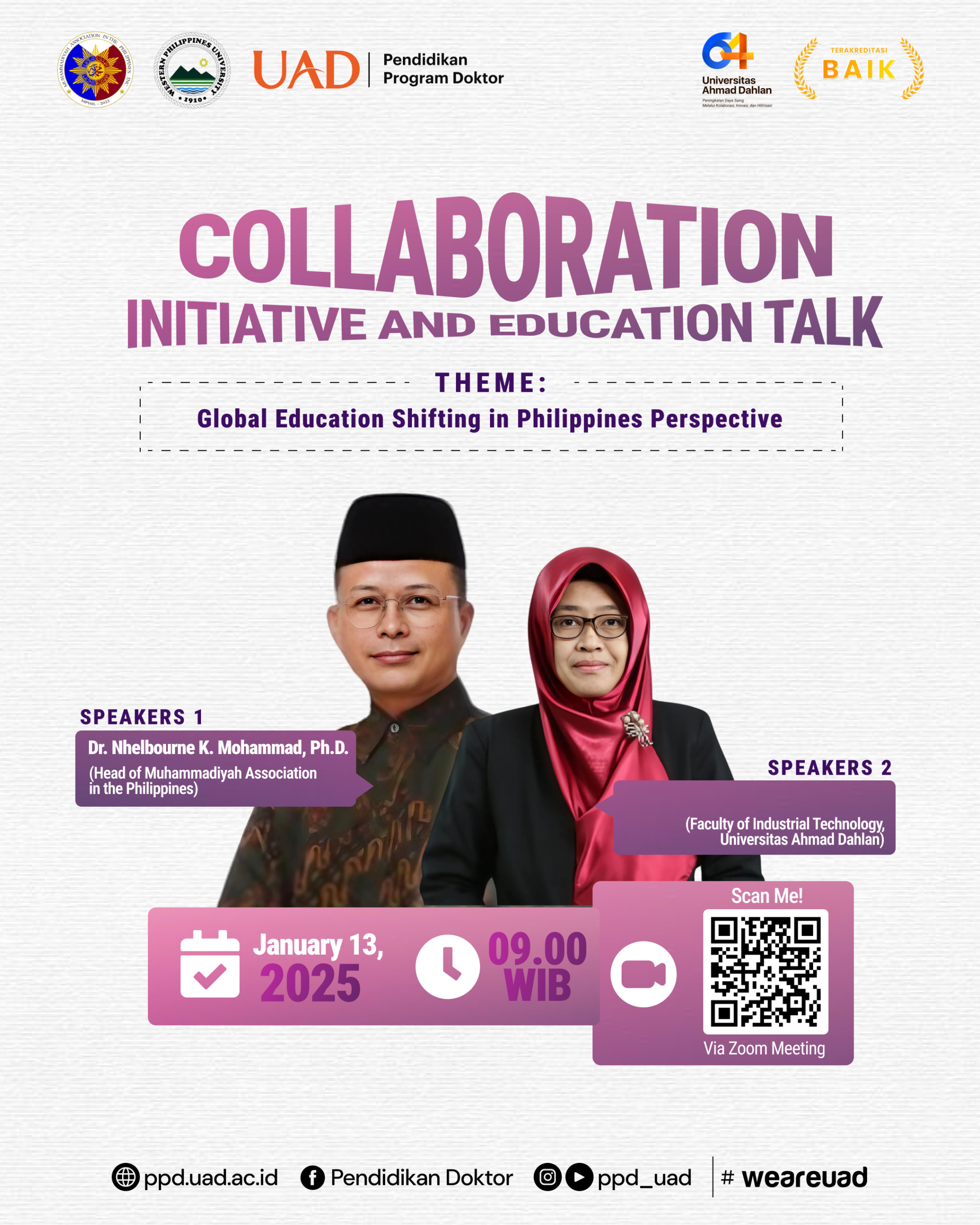 Kegiatan ini dilaksanakan secara daring dengan memanfaatkan platform konferensi virtual, sehingga dapat diikuti oleh peserta dari berbagai institusi pendidikan, baik dalam negeri maupun luar negeri. Workshop ini diselenggarakan sebagai bentuk dukungan terhadap peningkatan kapasitas akademik peneliti, dosen, mahasiswa, maupun praktisi yang tertarik dalam metode penelitian kualitatif serta strategi penulisan artikel ilmiah yang siap dipublikasikan.