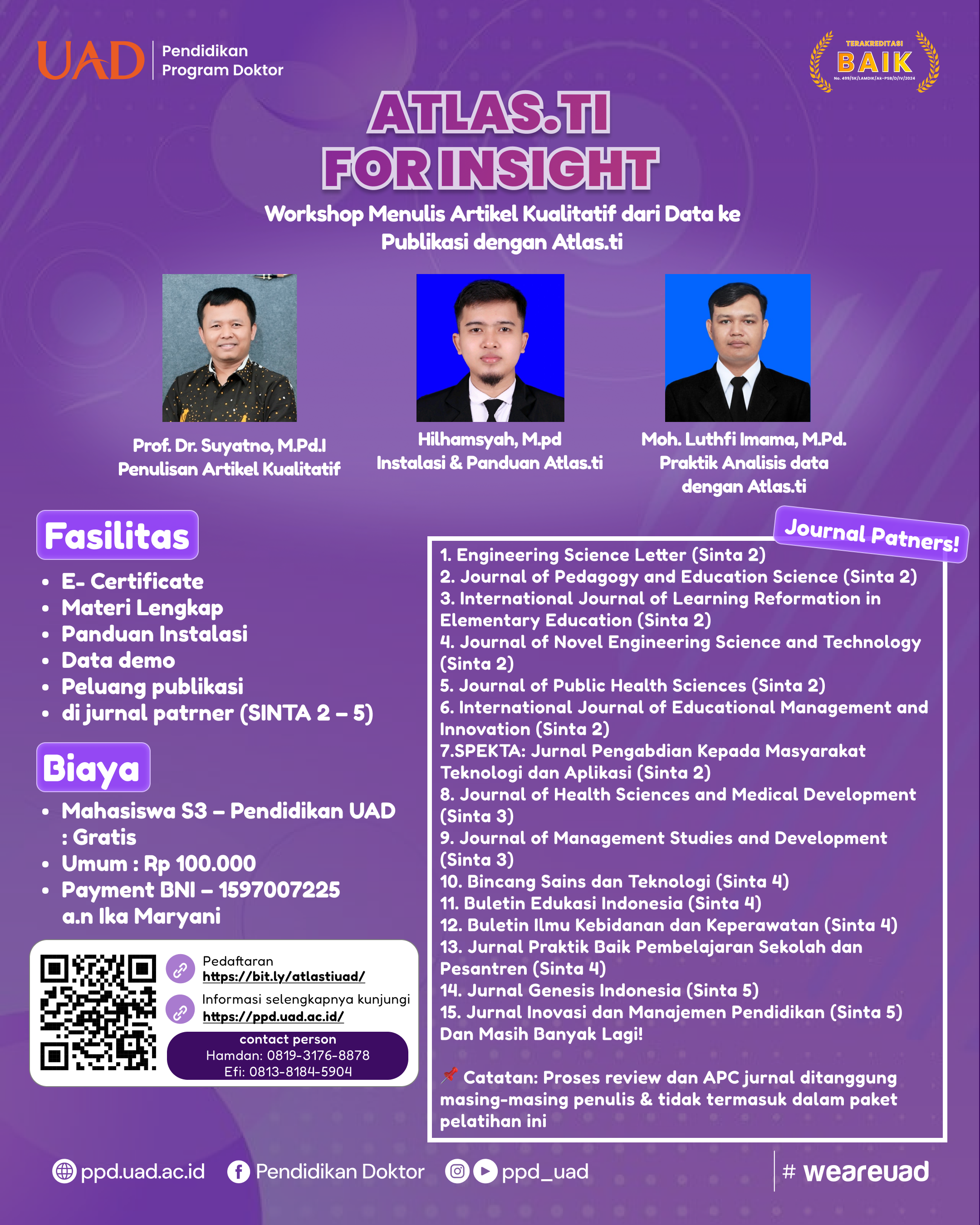 Workshop Internasional “Atlas.ti for Insight – Menulis Artikel Kualitatif dari Data ke Publikasi” Hadirkan Narasumber Profesional