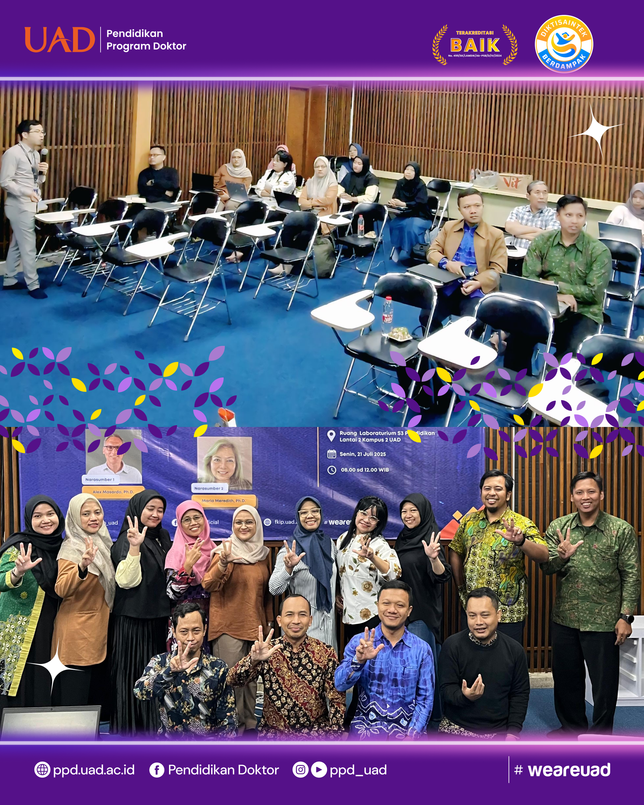 Kegiatan ini merupakan salah satu bentuk komitmen UAD dalam mendukung peningkatan kualitas publikasi ilmiah mahasiswa doktoral, khususnya dalam bidang pendidikan. Lingkup kegiatan bersifat lokal, diikuti oleh mahasiswa S3 Pendidikan UAD, dengan tujuan memberikan bimbingan praktis sekaligus memperkuat kapasitas akademik mahasiswa dalam menulis artikel ilmiah yang layak dipublikasikan di jurnal bereputasi.